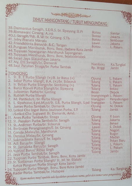 Hal itu dilakukan Keluarga Drs Sansi Saragih Manihuruk / Maslin Br Purba Silangit Amk (Op Flarisa Sarasada Saragih Manihuruk) dari Jalan Bambu Kuning Utara No 25 Jakarta terkait rencana pernikahan anak bungsu mereka Hans Maskulin Saragih Manihuruk SH yang akan mempersunting Claodia Rosanna Br Purba SKM, yakni putri dari keluarga B Purba Partupobol (Alm)/ Siti Br Situmorang yang beralamat di Jalan AR Saleh No 188 RT 09 Paalmerah Kota Jambi.